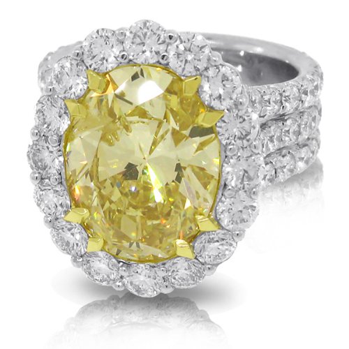 11.60ct 18k Two-tone Gold GIA Certified Oval Shape Natural Fancy Yellow Diamond Ring by Allurez