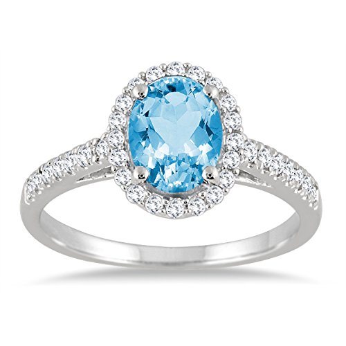 1.50 Carat Oval Blue Topaz and Diamond Halo Ring in 10K White Gold by Szul