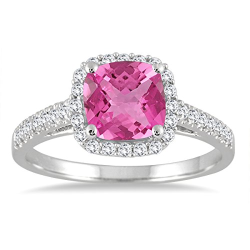 1.75 Carat Cushion Cut Pink Topaz and Diamond Ring in 10K White Gold by Szul