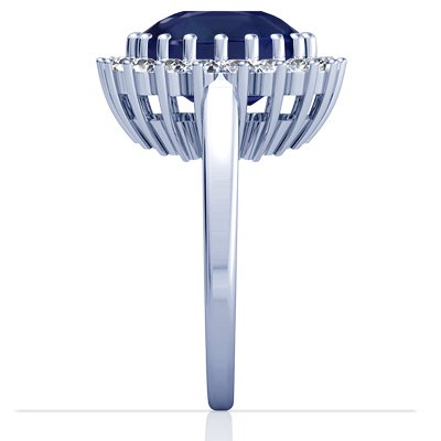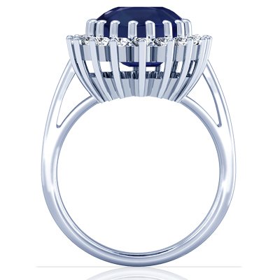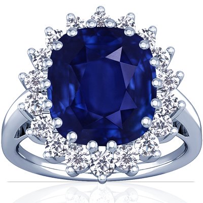 DescriptionThis classical design popularized by Princess Diana is the latest fashion statement and the ultimate gift. It comes with 0.72cttw diamonds rounds surrounding a 9.27ct. center untreated blue sapphire cushion. The Sapphire has intense blue color, FL eye clarity and excellent brilliance. This item is manufactured in USA.