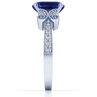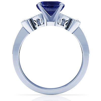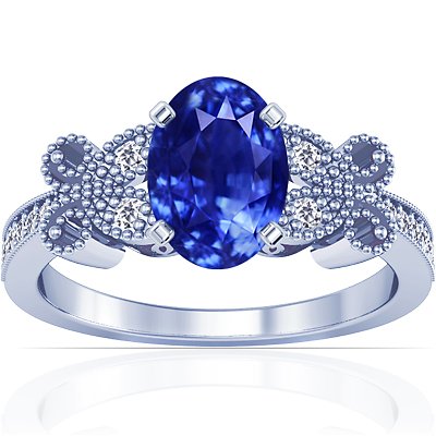 18K White Gold Oval Cut Blue Sapphire Ring With Sidestones by GemsNY
