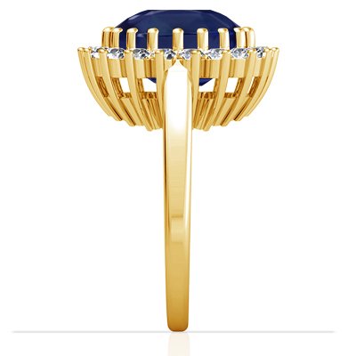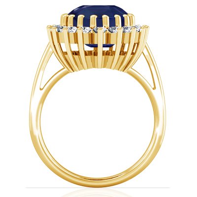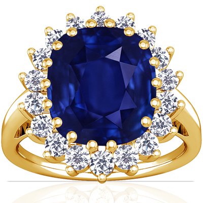 DescriptionThis classical design popularized by Princess Diana is the latest fashion statement and the ultimate gift. It comes with 0.72cttw diamonds rounds surrounding a 9.27ct. center untreated blue sapphire cushion. The Sapphire has intense blue color, FL eye clarity and excellent brilliance. This item is manufactured in USA.