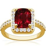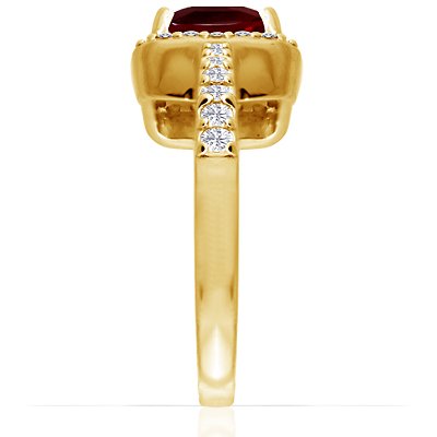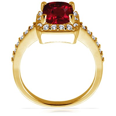 18K Yellow Gold Cushion Cut Ruby Ring With Sidestones (GIA Certificate) by GemsNY