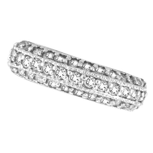 Diamond Three Rows Ring Band in 14K White Gold (0.84 ctw) by Allurez