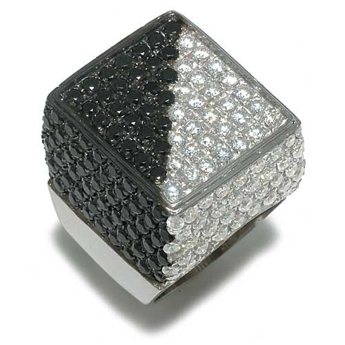 Gioie Women's Ring in White 18k Gold with White Cubic Zirconia and Black Cubic Zirconia, Size 9, 27 Grams by Gioie