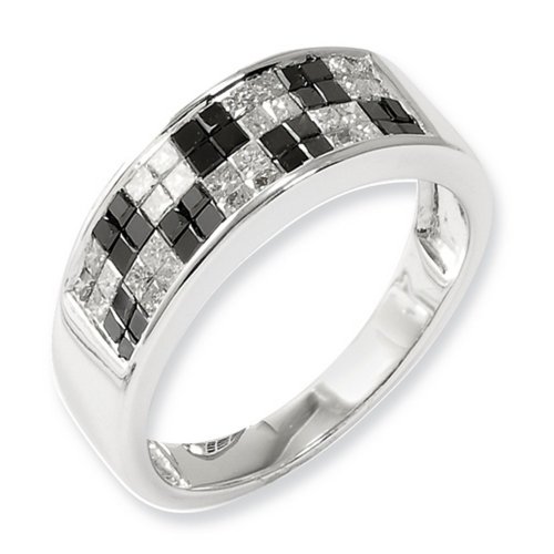 IceCarats Designer Jewelry Size 7 Sterling Silver Black White Diamond Ring by IceCarats