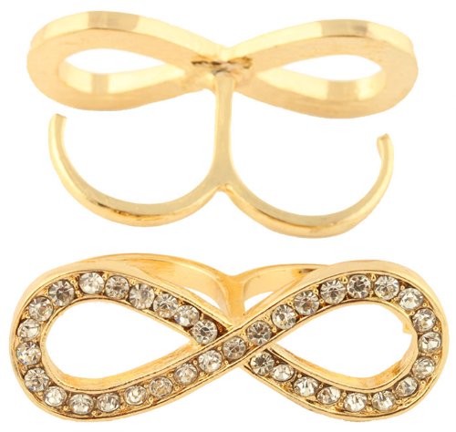 Ladies Gold with Clear Iced Out Thick Infinity Sign Double Finger Ring One Size Fits All by JOTW