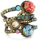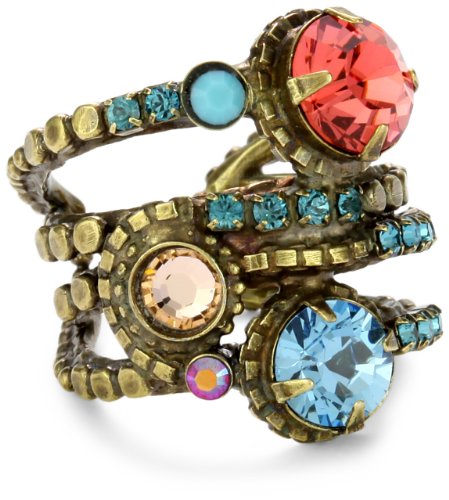 The Sorrelli “Tropical” Stacked Circular Crystal Ring will bring the rush of tropical colors to your day. This adjustable ring is constructed from gold-toned brass and contours an Vintage style along with a textured multi-band design. The entrance of the ring shows off a large number of round-minimize crystals. The crystals of this ring characteristic many colours, including mild blue, orange, turquoise, medium blue, and white. The Edges of the ring band characteristic a nugget-textured design. All Of The stones are held in situation with prong settings, and this adjustable ring measures 1 inch lengthy and 1 inch huge.