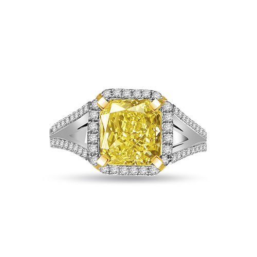 3.72 Ct GIA Fancy Yellow Diamond Cocktail Ring Platinum & 18k Yellow Gold