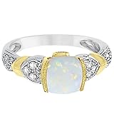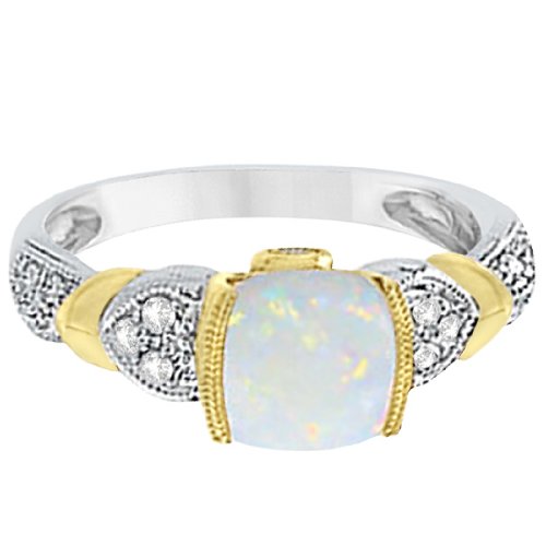 Diamond, Australian Opal, and Tanzanite Cushion Cocktail Ring For Women 14k Two-Tone Gold (1.10ct) by Allurez
