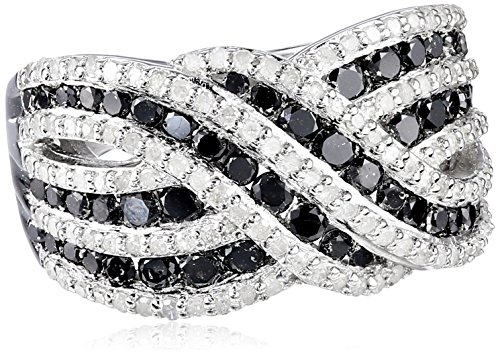 Sterling Silver Black and White Diamond (1 1/2cttw, I-J Color, I3 Clarity) Twisted Ring, Size 6 by Amazon Curated Collection