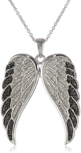 Sterling Silver Black and White Angel Wings Diamond Pendant Necklace (1/2 cttw, I-J Color, I2-I3 Clarity), 18″ by Amazon Curated Collection