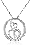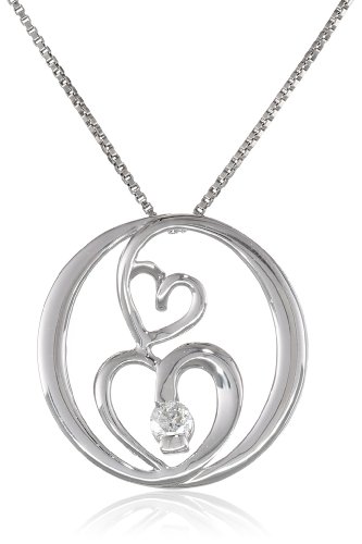 Sterling Silver Circle with Two Open Hearts Inside Diamond (1/10cttw, I-J Color, I2-I3 Clarity) Necklace, 18″ by Amazon Curated Collection