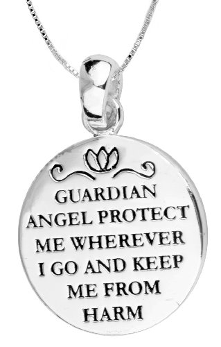 Sterling Silver “Guardian Angel Protect Me Wherever I Go and Keep Me From Harm” Reversible Pendant Necklace with Angel, 18″ by Amazon Curated Collection