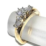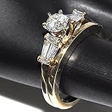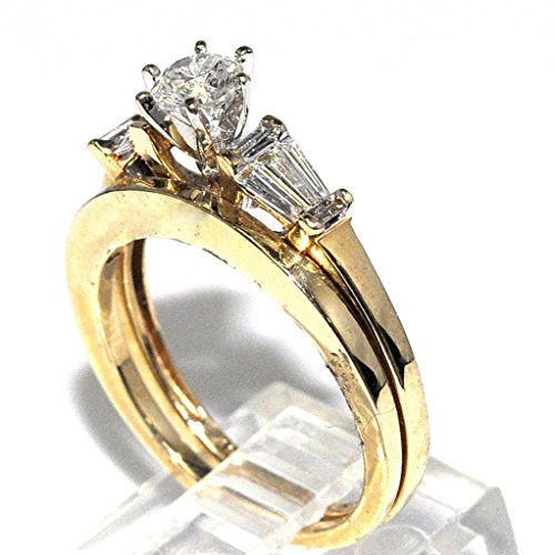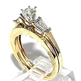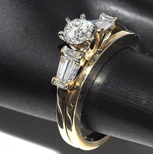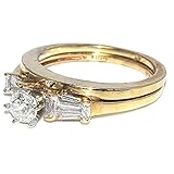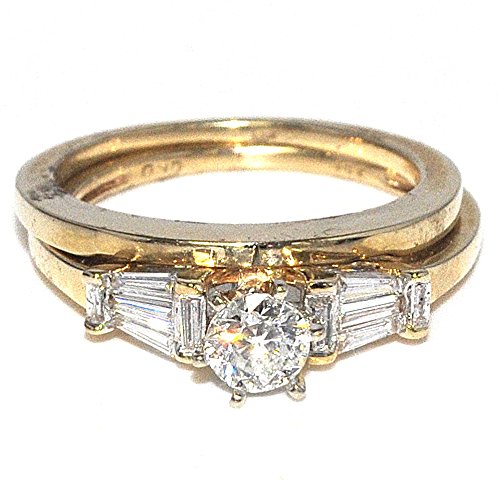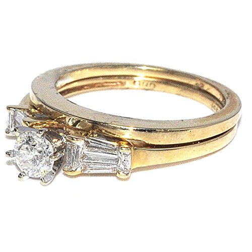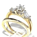 Zero.75ct Diamond Bridal Set Wedding Ring And Band 14K Gold Baguette & Round