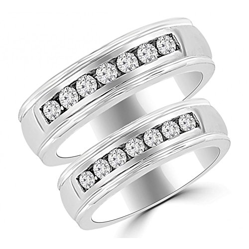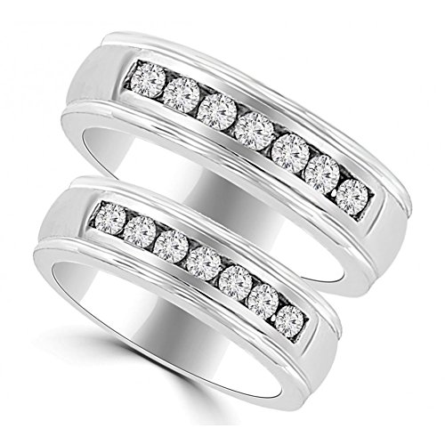 1.06 ct His & Hers Round Cut Diamond Wedding Band Ring Set in Platinum In Size 12 by Madina Jewelry