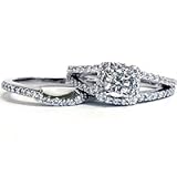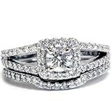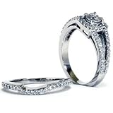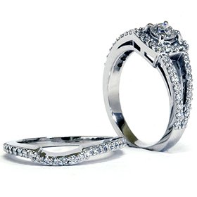 1.20CT Pave Halo Split Shank Diamond Ring Set 14K White Gold by Pompeii3 Inc.