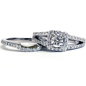 DescriptionThis widespread womens engagement wedding ring set features a .50ct heart stone. All diamonds are set in strong 14k white gold. 1.20ct whole diamond weight.