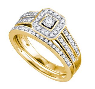 14k Yellow Gold Round Natural Diamond Square-shape Halo Womens Ladies Bridal Wedding Engagement Ring & Anniversary Band Set – .50 (1/2) Ct.t.w. by Wholesale Findings Jewelry