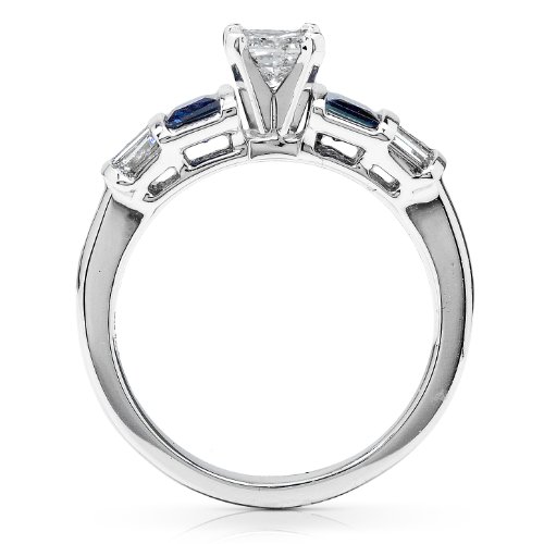 3/4 Carat Blue Sapphire & Diamond Wedding Rings Set in 14k White Gold – Size 6.5 by Diamond-Me