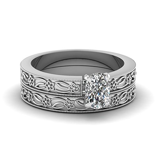 Fascinating Diamonds 0.70 Ct Cushion Cut Diamond Modest Solitaire Engagement Bridal Rings Set SI1-H GIA by Fascinating Diamonds-Engagement & Wedding Rings Set