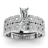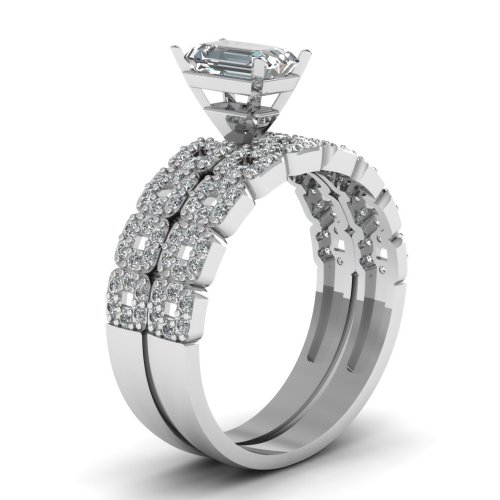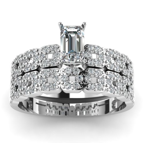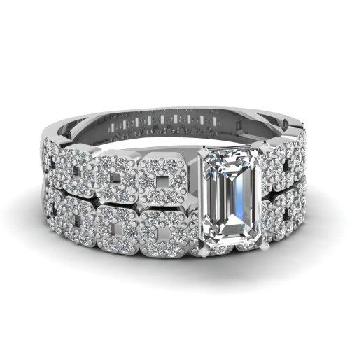 Fascinating Diamonds 1.20 Ct Emerald & Round Cut Diamond Pleasing Wedding Engagement Rings Set VS1 GIA by Fascinating Diamonds-Engagement & Wedding Rings Set