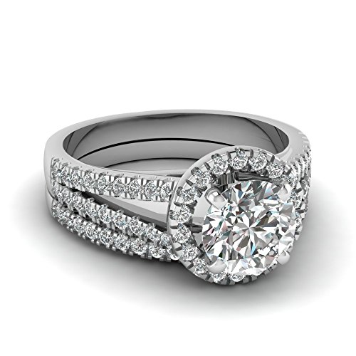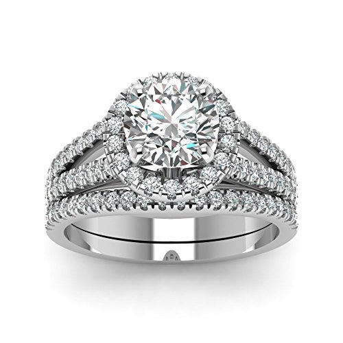 Fascinating Diamonds 1.30 Ct Round Cut Diamond Engagement Wedding Rings Pave Set In SI1 14K GIA by Fascinating Diamonds-Engagement & Wedding Rings Set