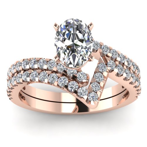 Fascinating Diamonds 1.80 Ct Oval Shaped VS2 Diamond Zee Shape Engagement Wedding Rings Set 14K GIA by Fascinating Diamonds-Engagement & Wedding Rings Set