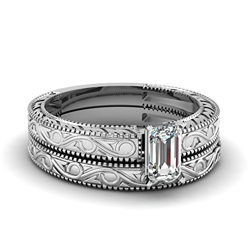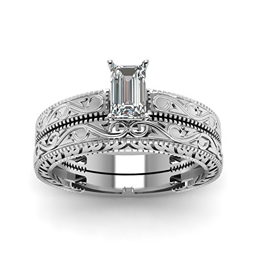 Fascinating Diamonds Emerald Cut .70 Ct Diamond Vintage Solitaire Engagement Wedding Rings Set VVS1 GIA by Fascinating Diamonds-Engagement & Wedding Rings Set