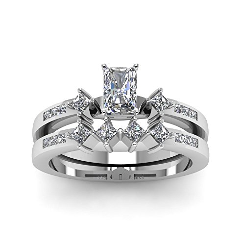 NEW Radiant Minimize Diamond Engagement Wedding Ceremony Rings Set W Princess Diamonds In Channel Atmosphere (1.55 Cow) # Sku-L050RA-EN39-Forty Seven # Aspect Stone Details-Aspect Stone Carat Weight-1.05 Ctw.,Facet Stone Color-E,Side Stone Clarity-SI2,Facet Stone shape-Princess # Additionally On Hand 18K & Platinum.
