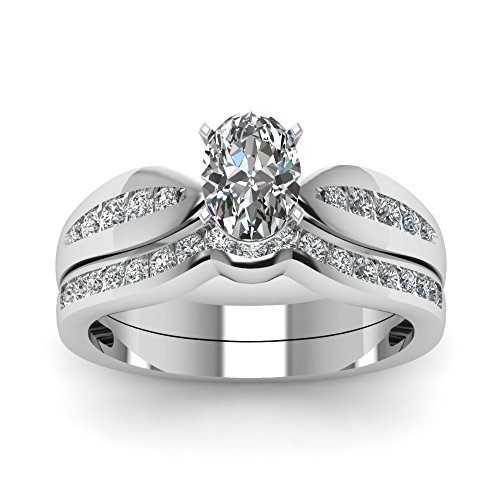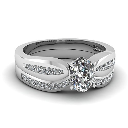 Fascinating Diamonds Tapered 0.80 Ct Oval Shaped VS2 Diamond Engagement Wedding Rings Channel Set 14K GIA by Fascinating Diamonds-Engagement & Wedding Rings Set