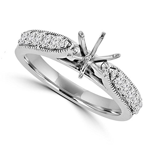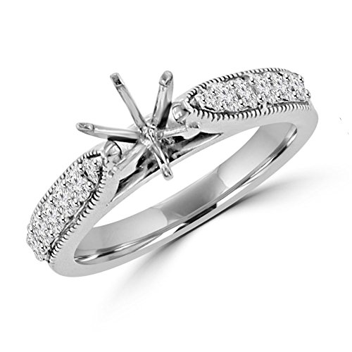 0.70 ct Round Cut Diamond Semi Mount Engagement Ring Whit Millgrain on The Shank in Platinum In Size 5 by Madina Jewelry
