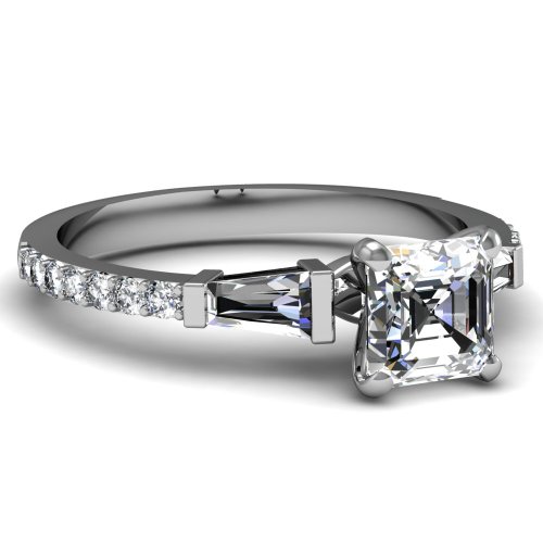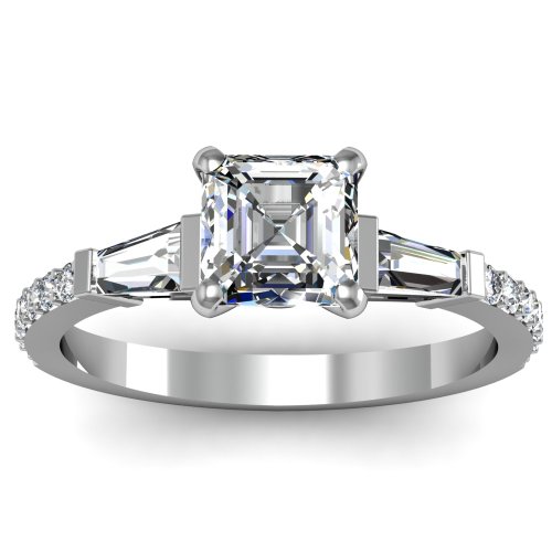 1.15 Ct Asscher Cut Diamond Mesmeric Three Stone Engagement Ring Pave Set VVS2-H 14K by Fascinating Diamonds