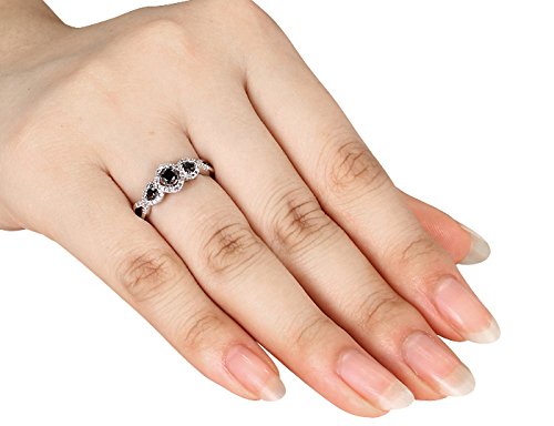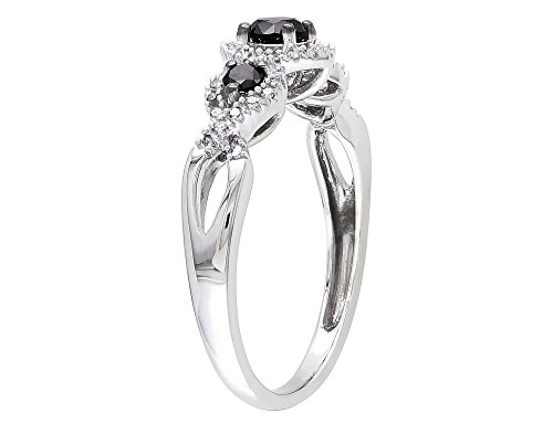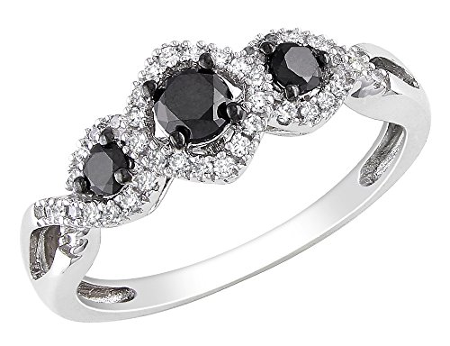 Black and White Diamond Three Stone Ring 1/2 Carat (ctw) in 10k White Gold, Size 7.5 by MyJewelryBox