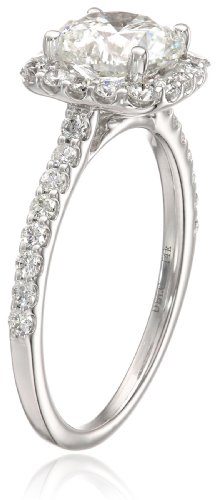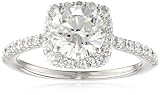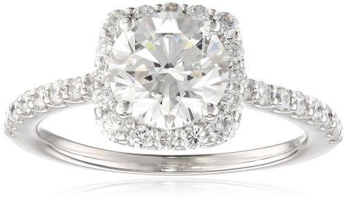 GIA Certified Cushion Halo Side Stones 1 1/2cttw Center – 2cttw 14k Rhodium Plated White Gold Engagement Ring, Size 6 by Amazon Curated Collection