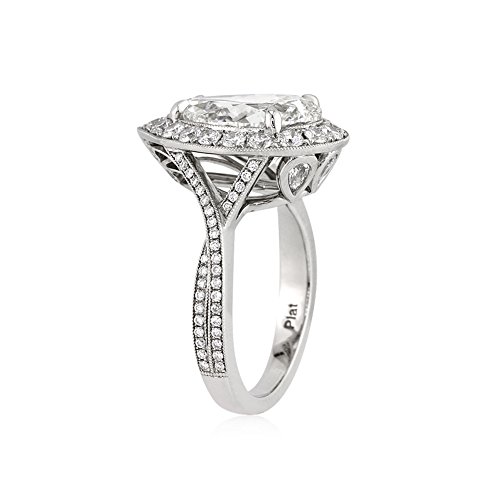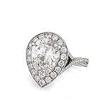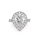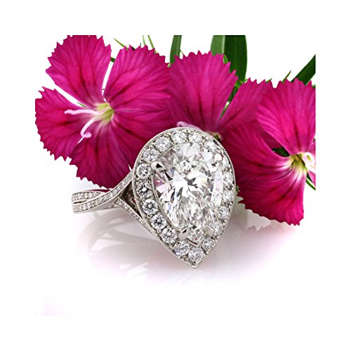 DescriptionThis one of a kind, mesmerizing pear shaped diamond ring will astonish you with its size, quality, brilliance and design! The remarkably beautiful 4.06ct pear shaped diamond set in the center of this custom-made masterpiece is AGS certified, one of the leaders in diamond grading, at H-VVS2, white and practically flawless! The cut is one of the most beautiful you will ever see! It sparkles tremendously. It is accented by a halo of round brilliant cut diamonds in a pave setting. The unique shank features two rows of round diamonds in a pave setting that crisscross on the sides. The craftsmanship is extraordinary! The center basket features three beautiful pear shaped diamonds that are bezel set on the rounded part and gorgeous handmade filigree accents with round diamonds towards the tips. This work of art is breathtaking! Sure to become a family heirloom that will be cherished forever!