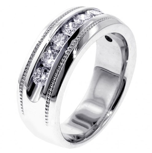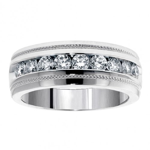 1.00 CT TW Brilliant Cut Diamond Men's Ring in Platinum Channel Setting – Size 10.5 by VIP Jewelry Art