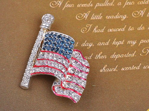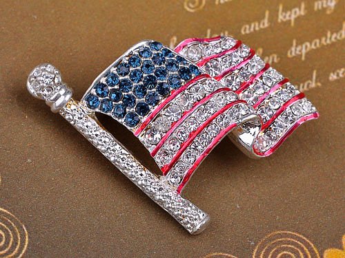 Genuine Crystal Rhinestone America USA Flag Fashion Costume Jewelry Pin Brooch by Alilang