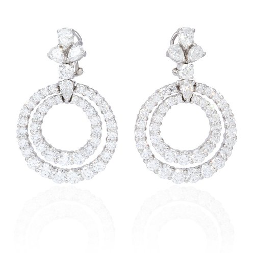 DescriptionThese terrific pair of 18k white gold dangle Jewelry, designed in Italy, function Eight pear reduce and Eighty Four spherical sensible reduce white diamonds of F coloration, VS2 readability and very good cut and brilliance, weighing Thirteen.33 carats complete. These diamond dangle Earrings include submit and omega clips. These dangle Earrings measure 44mm in length and 29 mm at the widest level.